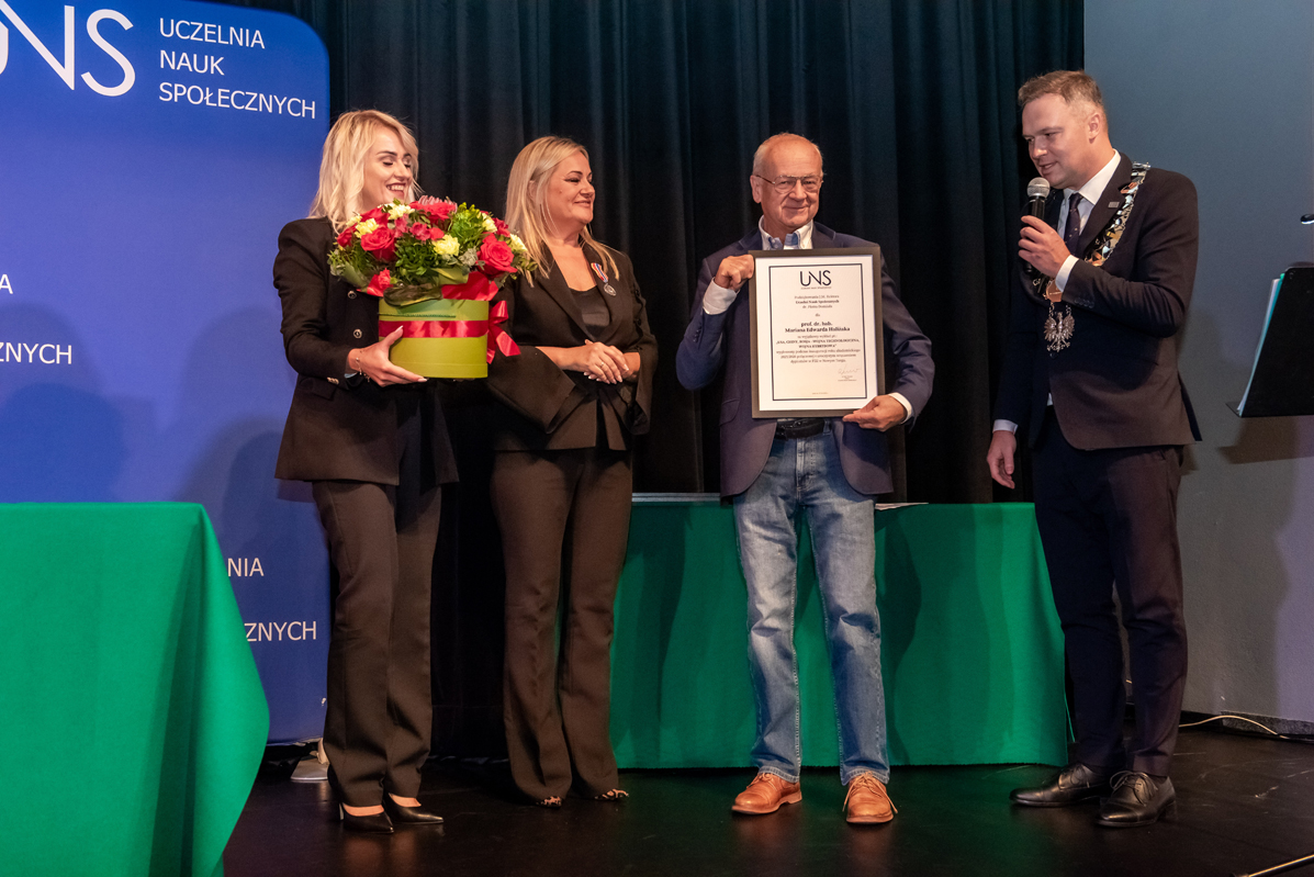 Władze Uczelni Nauk Społecznych pragną wyrazić szczególną wdzięczność osobom, które uświetniły tę ceremonię. JM Rektor dr Piotr Domżał przekazał oficjalne podziękowania: