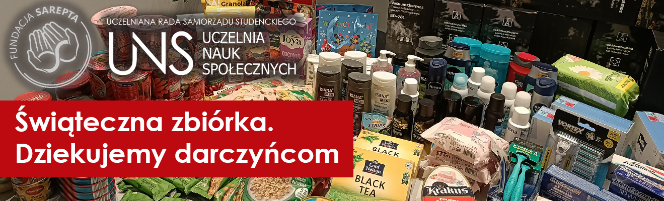 Uczelniana Rada Samorządu Studenckiego UNS zaprasza wszystkich studentów i wykładowców do wzięcia udziału w świątecznej zbiórce rzeczy pierwszej potrzeby dla podopiecznych Fundacji Sarepta.